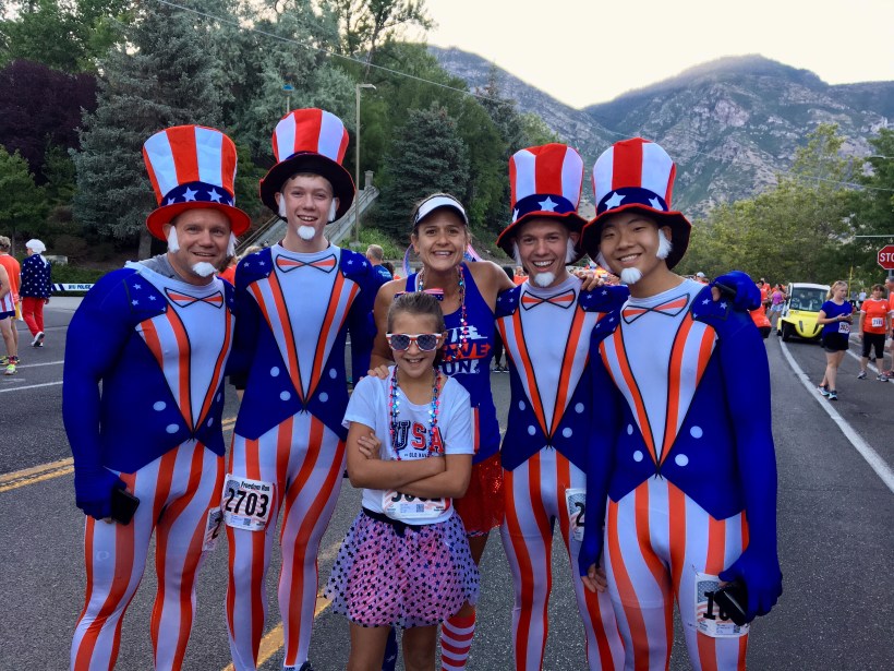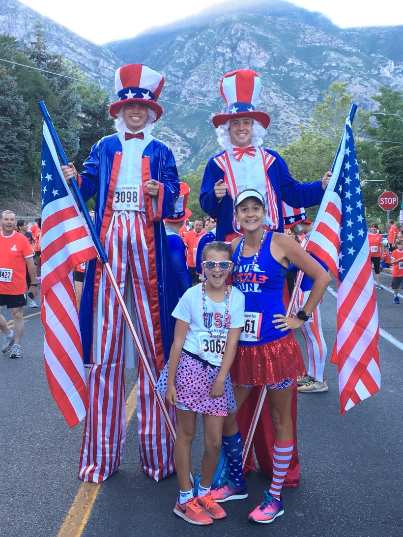 This year when my knee injury side-lined our usual outdoor wilderness anniversary adventure, my youngest daughter and I opted to walk the Freedom Festival 5k as my hubby and sons backpacked the longest slot canyon in the world. We decided to dress festive and girly to ensure the best time possible.
