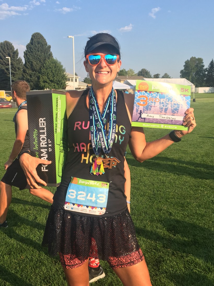 My goal was to finish in under 25 minutes, so I was happy to cross the finish line with a 23:16- a 7:30 mile average pace. When I checked the results, I was floored to see I’d actually placed 3rd over-all. Since you only compete against whomever shows up- I guess all the fast runners were doing the half!